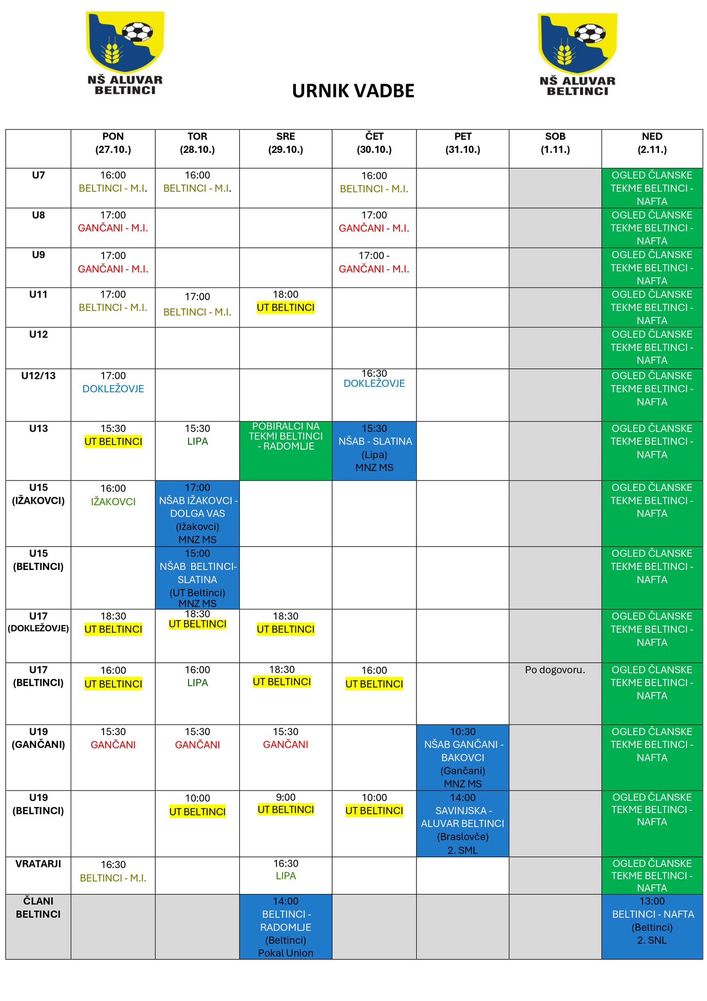 Razpored aktivnosti NŠAB od 27. – 2. novembra 2025
