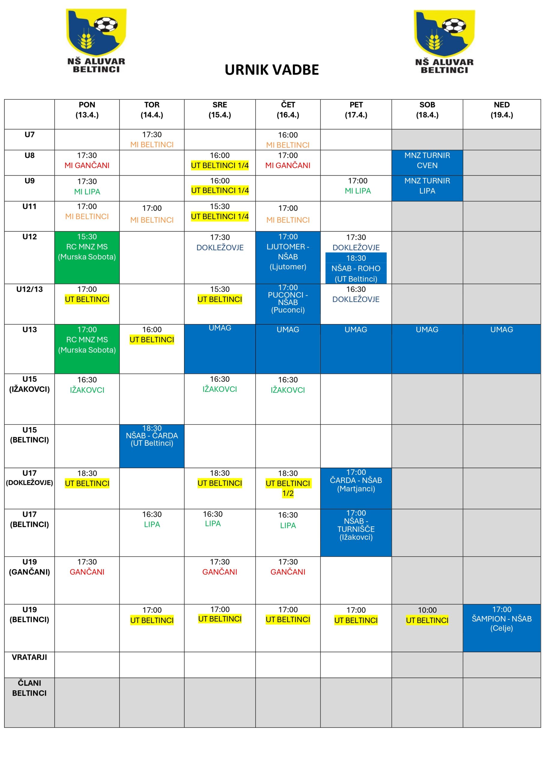 Razpored aktivnosti NŠAB od 13. – 19. aprila 2026