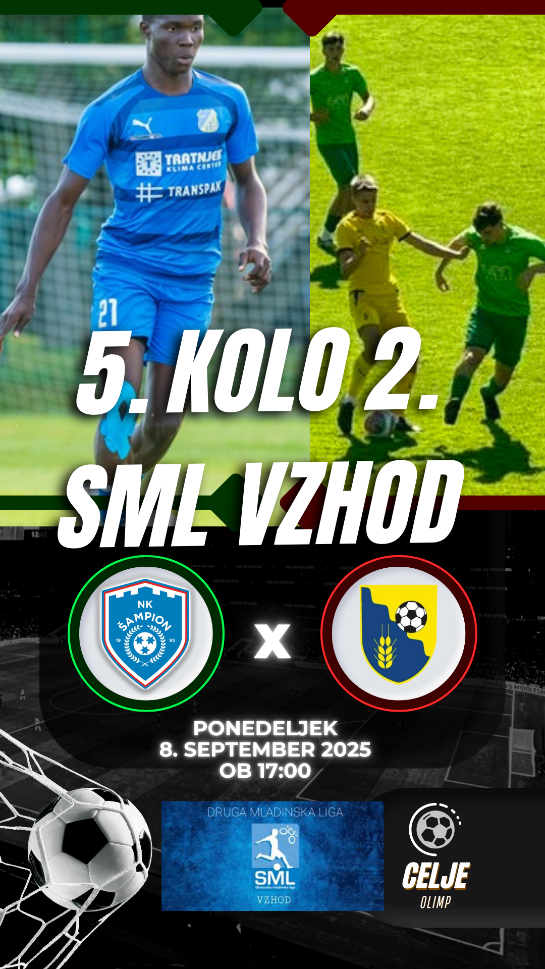 V 5. kolu 2. SML vzhod naši mladinci v ponedeljek gostujejo pri NK Šampion v Celju. tekma se prične ob 17.00.