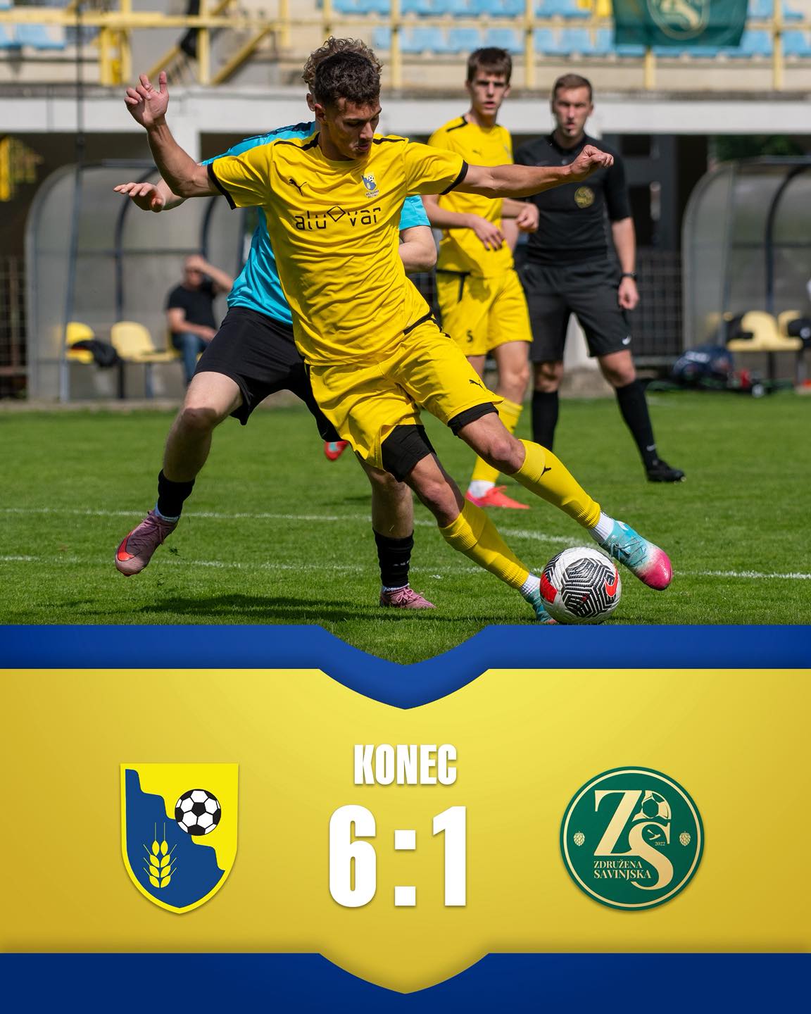 Žuti so prikazali odlično predstavo in si priigrali visoko zmago (6:1). S hattrickom je blestel Tian Kosi, dvakrat je v polno meril Samod Adeola Akinremi, končni rezultat pa je z zadetkom potrdil še Luka Vodušek.
